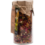 Склад: іван чай ферментований, м'ята, апельсин, яблука, пелюстки троянд, календула, волошка, лист брусниці, обліпихаПакування: скляна банка 500 млСпосіб заварювання: 1 ст. л. суміші залити гарячою водою 90 ° C, дат..